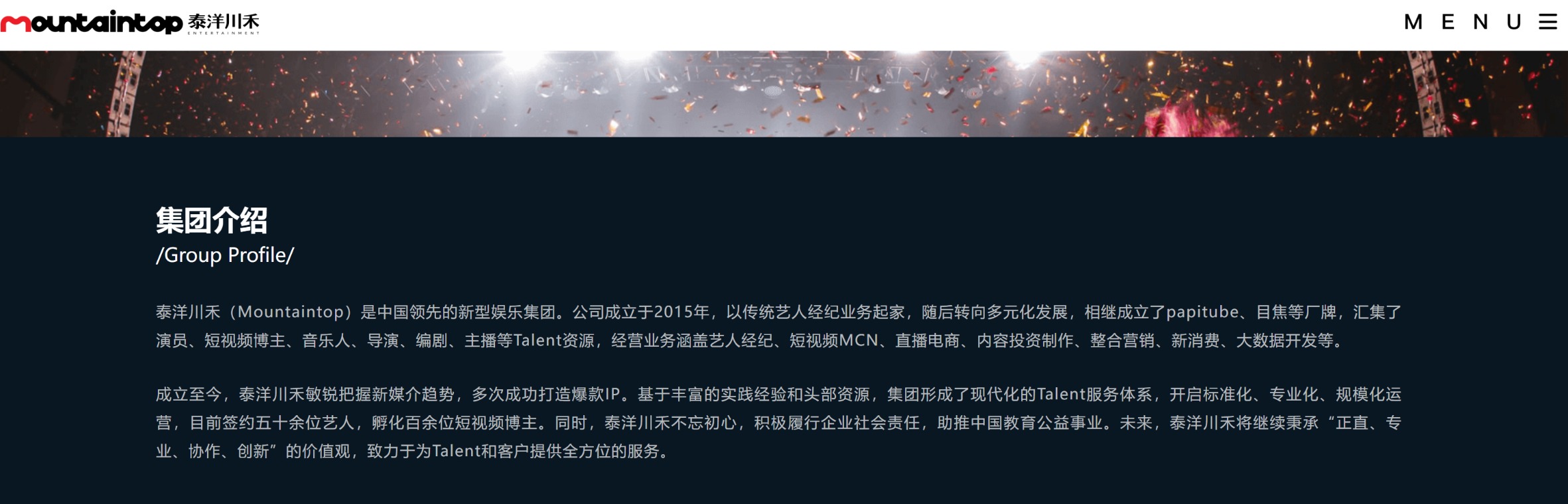 泰洋川禾官网显示,papitube由杨铭和papi酱共同创立于2016年4月,成立以来,papitube签约并孵化了百余位短视频创作者,涵盖种草测评、美食、美妆、搞笑、生活方式、家庭场景、母婴、文化等垂直领域。
